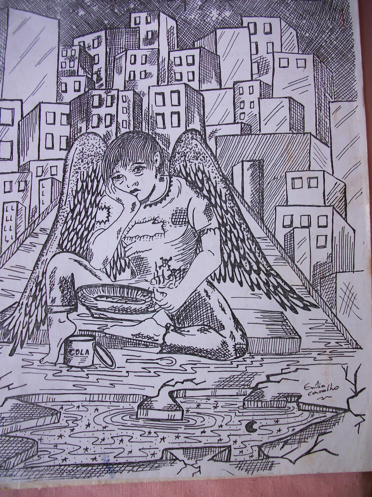 O ‘anjinho’ tremia o corpinho franzino num espasmo triste... Cheirava cola o bom menino! A cola cheirava meu ‘Arcanjo’?